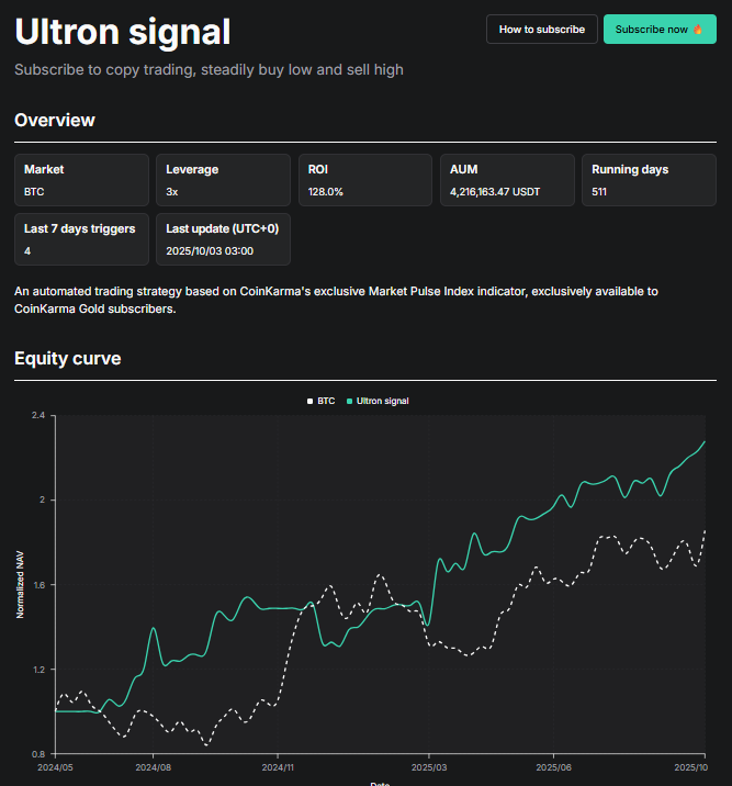 Ultron Signal 為 Gold 會員專屬的「信號跟單」策略。